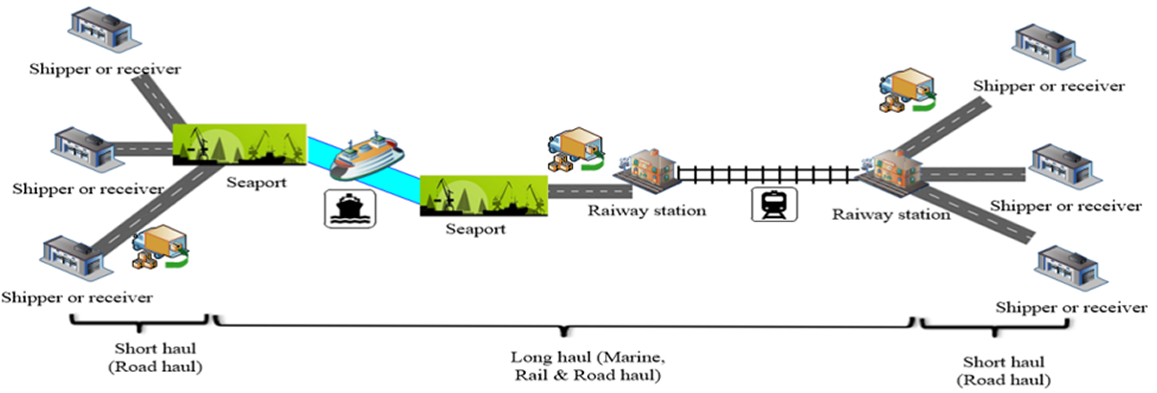کالا درون واحدهای حملونقل استاندارد (مانند کانتینر، بدنههای متحرک، نیمهتریلر یا واگنها) جابهجا میشود تا از جابهجایی مستقیم جلوگیری گردد.