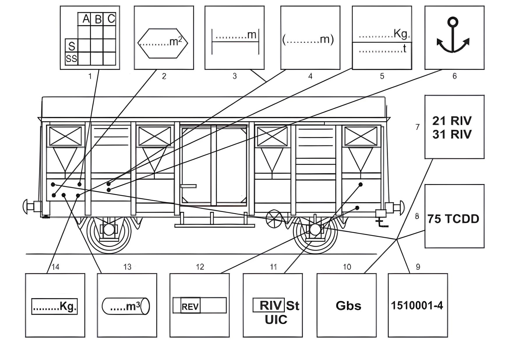 | E | واگن با دیواره بلند | با واگن باز با دیواره بلند، کانتینرها، زغالسنگ، انواع سنگ معدن، آجر، کاشی، آهن، لوله، شن و غیره حمل میشوند. |